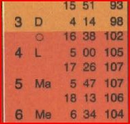 - On constate un écart très important entre les PM et les syzygies (Pleine Lune et Nlle Lune) que cette théorie n'explique pas; dans le tableau des coefficients de marée ci-contre, on voit la Pleine Lune le 3 à 16h38 avec un coeff 102. Le Coeff le plus fort sera pourtant le 5 à 05h47...